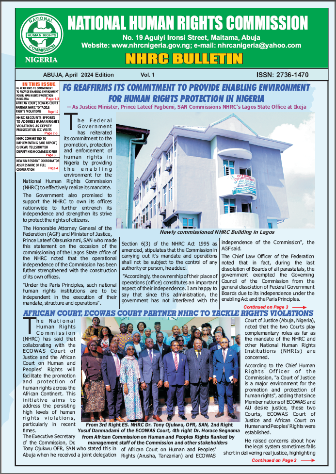NHRC MONTHLY DASHBOARD PROVIDES OPPORTUNITY TO ADDRESS HUMAN RIGHT CHALLENGES-OJUKWU